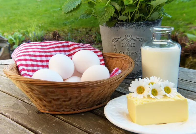 Podobně jako snůška vajec stoupá v jarních měsících i dojivost krav, ovcí a nebo koz. Čerstvé mléko a mléčné výrobky, jako jsou jogurt, kefír, tvaroh a čerstvé sýry, tak můžeme směle označit za jarní sezónní suroviny. Už dávno si lidé cenili takzvané májové mléko a máslo z trávy, pokládali ho dokonce až za lék. A dnes už víme, že na tom rozhodně něco pravdy je. Zvířata sa pasou venku na slunci a mají hojnost zeleného krmiva, svěží trávy a jarních bylin, a jejich mléko je tak žlutější a bohatší nejen na tuky, zejména zdraví vysoce prospěšnou konjugovanou kyselinu máselnou (CLA) a omega-3 mastné kyseliny, ale i vitamíny A, K2, D3 a karotenoidy.